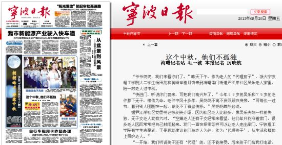 宁波日报:这个中秋,他们不孤独