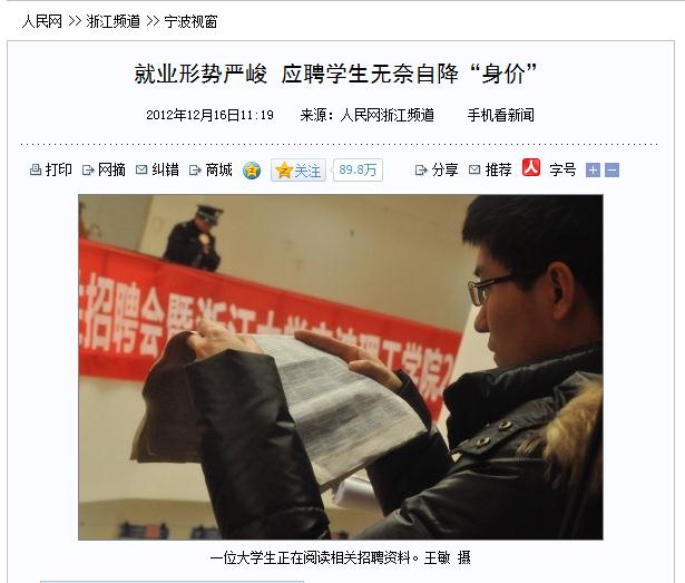 人民网:就业形势严峻 应聘学生无奈自降“身价”