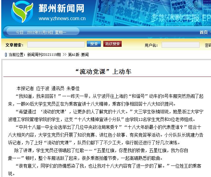 新闻链接:http://yzaper.yzhnews.com.cn/shtml/yzrb/20121119/87431.shtml