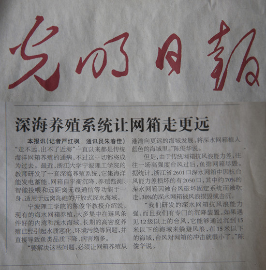 光明日报:深海养殖让网箱走的更远