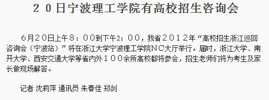 宁波晚报:20日宁波理工学院有高校招生咨询会