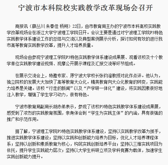 东南商报:宁波市本科院校实践教学改革现场会召开