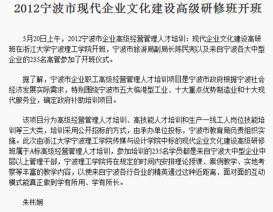 东南商报:2012宁波市现代企业文化建设高级研修班开班