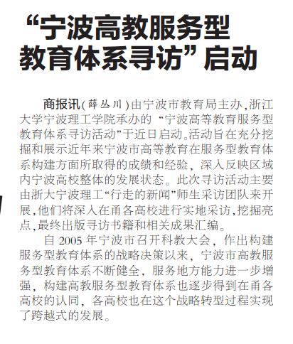 东南商报:“宁波高教服务型教育体系寻访”启动