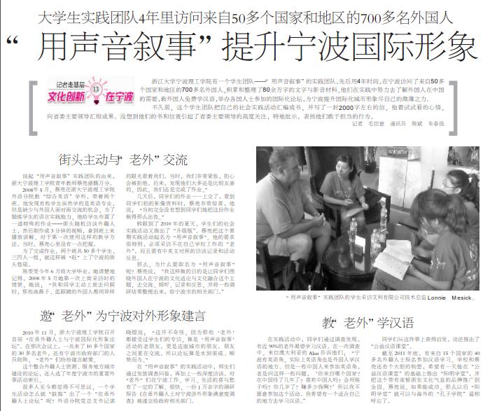 现代金报:宁波理工学院学生花四年时间和老外做朋友