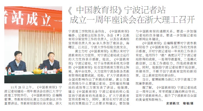 东南商报:《中国教育报》宁波记者站成立一周年座谈会召开