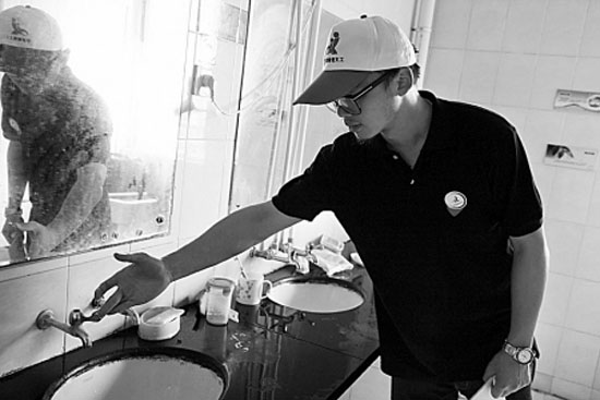 将座便器水箱中的球阀杆向下弯15度,在冲干净马桶的情况下,大大节约冲水量;早上一家人的洗脸水储在一起,刚好拖一次地板……这些“举手之劳”的节水小窍门受到了居民的欢迎。