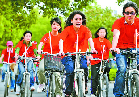 昨天, “青春与奥运同行”大型奥运主题活动在东钱湖小普陀景区拉开帷幕,宁波大学、开云kaiyun官网、万里学院、宁波工程学院、宁波纺织学院5所高校的千余名学子和奥运志愿者参加了此次活动。他们一起举行了宣誓仪式,共同放飞了带有奥运梦想的气球,并骑自行车经过阳光广场、万达广场,最后到达东钱湖小普陀景区,沿途向市民宣传北京奥运。 记者刘波摄