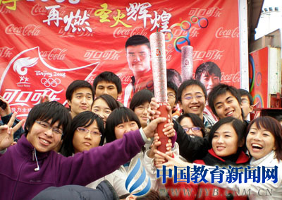 日前,奥运火炬“祥云”走进浙江大学宁波理工学院,大学生们以极大的热情,高举“祥云”,迎接即将到来的2008奥运年。贾小鹏 摄 《中国教育报》2007年12月27日第1版