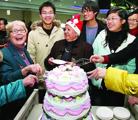 昨晚,浙江大学宁波理工学院的大学生们和外籍教师一起欢度平安夜。同学们用流利的英语为外籍教师送去了节日的祝福。 来自美国印第安纳波利斯大学为中美班授课的教授Mary高兴地表示:在这里体验到了家的感觉。 (通讯员 贾小鹏 记者 张柯)