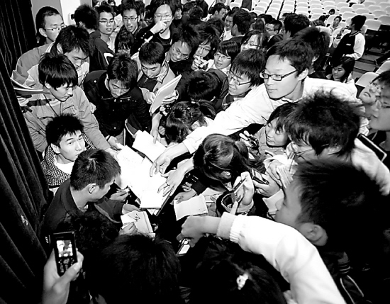本报讯 这是大学生球迷在向张劲松、王磊索要签名。昨日,宁波市篮球训练点在浙江大学宁波理工学院挂牌。这是学院继成为国家藤球队训练基地后获得的又一项殊荣。   作为宁波理工学院“迎奥运周”系列主题活动的重头戏,“八一”男篮的张劲松和王磊的到来为篮球训练点的挂牌增色不少,100多名大学生球迷将张劲松和王磊团团围住,纷纷要求两位球星签名留念,火热的篮球激情可见一斑。   据介绍,受“宁波篮球”的影响,浙江大学宁波理工学院的学生对篮球产生了浓厚的兴趣,尤其是“八一”队落户宁波后,家门口球队的出色表现让热情的大学生球迷逐年增多。此外,借“八一”女子篮球队落户鄞州之际,学院还组建了篮球宝贝啦啦队,她们精彩的亮相,进一步调动了一大批女生主动参加体育锻炼的积极性。 本报通讯员 贾小鹏