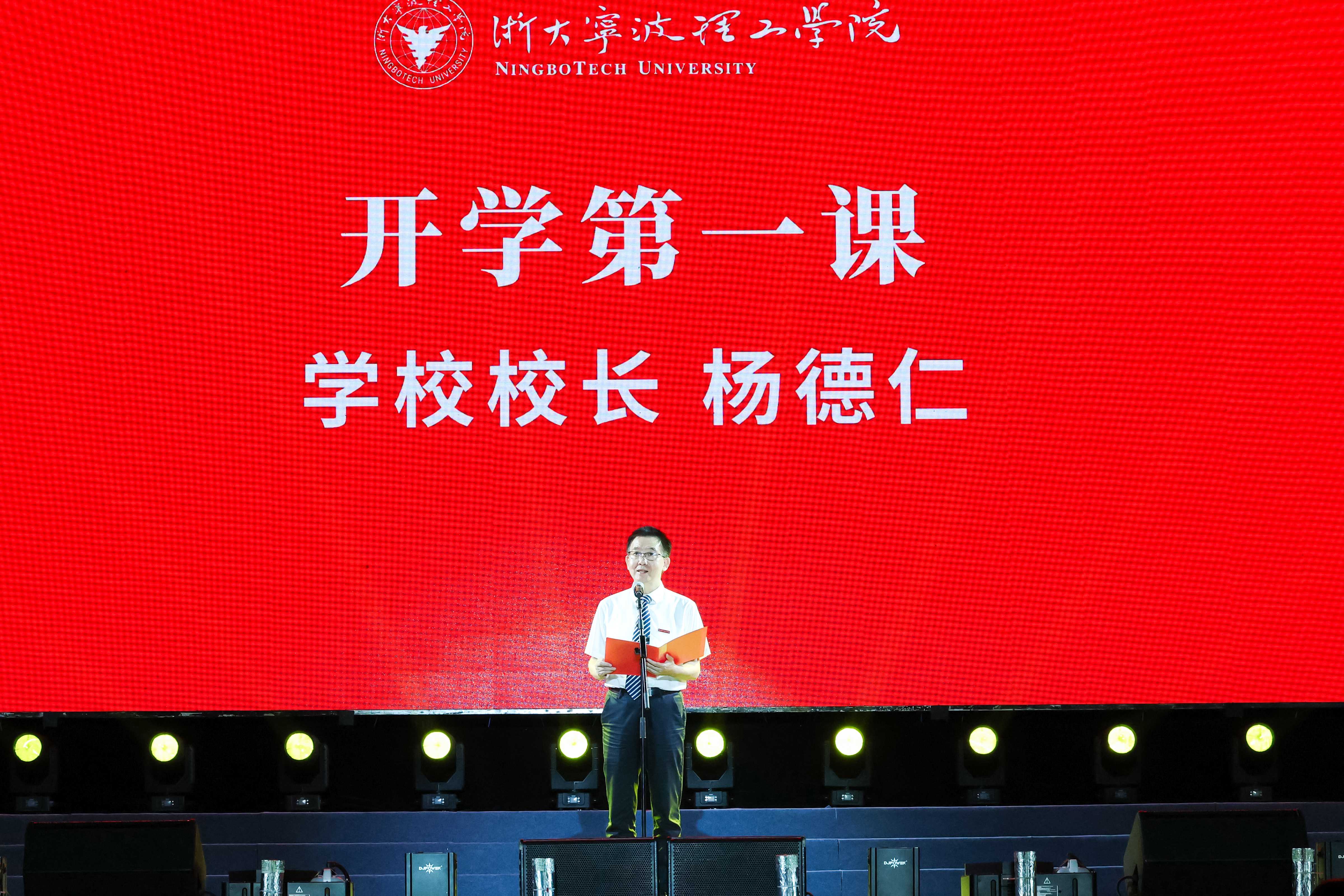 “我宣誓,勇担‘国家富强、民族复兴’重任;谨遵‘明德弘毅、开物启新’校训……”在全校新生铿锵有力的入学宣誓中,开学典礼落下帷幕,随后,“启新之夜”迎新晚会开始。晚会以原唱歌曲《东临大海》开场,随后现代舞、歌曲串烧、武术表演、情景诗朗诵等轮番呈现,多样表演形式丰富了活动内容,更凝聚了新一代浙大宁理人的归属感与向心力。