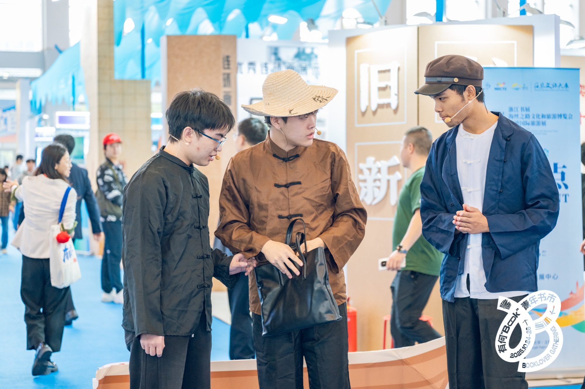 宁波工程学院带来的《叶澄衷》快闪演绎,吸引不少读者驻足。演员们身着特色服装,以现代戏剧的形式重现经典,引来阵阵掌声。“没想到经典文学可以这么‘燃’!”一位带着孩子观展的市民刘女士感慨道。