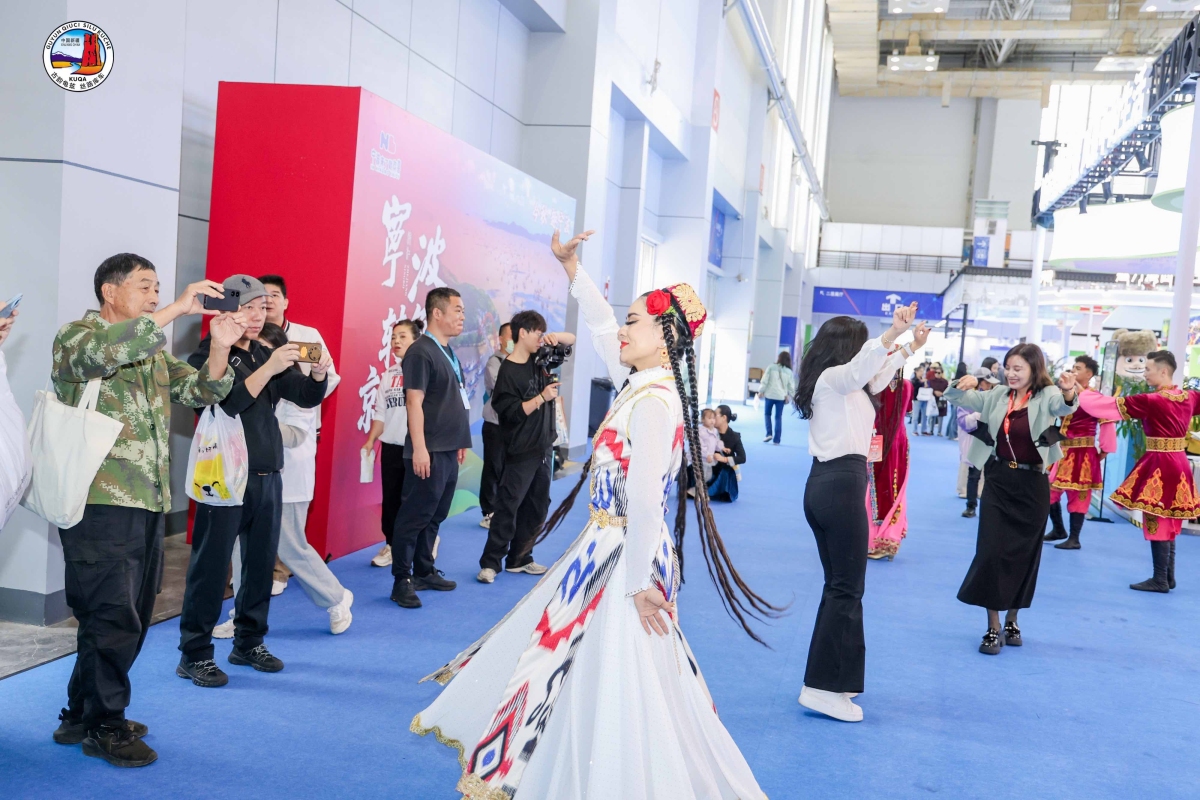 此次库车代表团还带着龟兹乐舞的千年神韵,将灵动的舞姿、悠扬的旋律,从天山脚下带到了东海之滨。