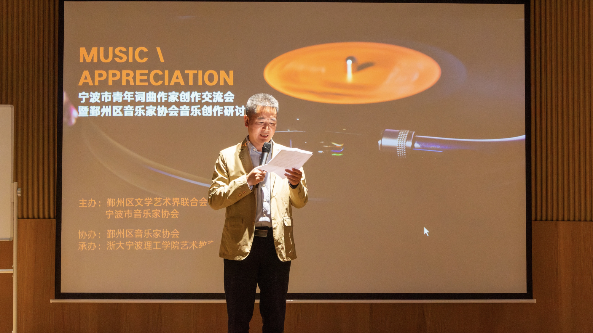 交流会上,鄞州区文联主席胡冬平致辞。他表示,希望以此次研讨会为契机,引导广大创作者深入挖掘宁波丰富的本土文化元素,积极探索新媒体时代的音乐创作手法,推动传统与现代有机融合,创作出既富有艺术感染力又具备传播力的优秀作品。