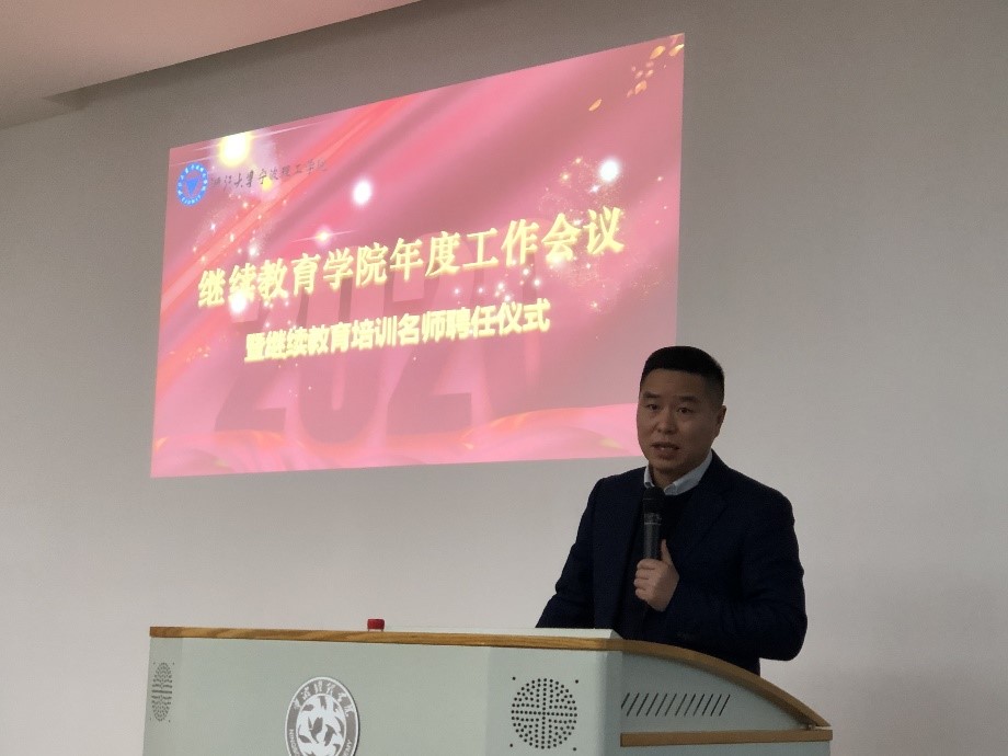 1月13日,继续教育学院年度工作会议暨继续教育培训名师聘任仪式在学术交流中心一号楼召开。浙江大学宁波理工学院副院长毛才盛,继续教育学院金朝晖、贾小鹏副院长,继续教育学院聘请的培训名师以及各合作教学点的负责人、教务人员参加了会议,会议由贾小鹏主持。