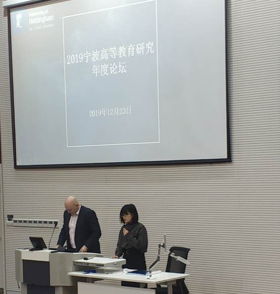 2019年12月23日上午,由宁波市教育局主办的“2019宁波高等教育研究年度论坛”在宁波诺丁汉大学召开本次论坛主要围绕高水平大学建设路径研究、高校教育教学改革研究、高校人才培养模式研究、产教融合助推高水平大学建设研究等五个主题进行研讨。我院两位教师受邀作分论坛报告。