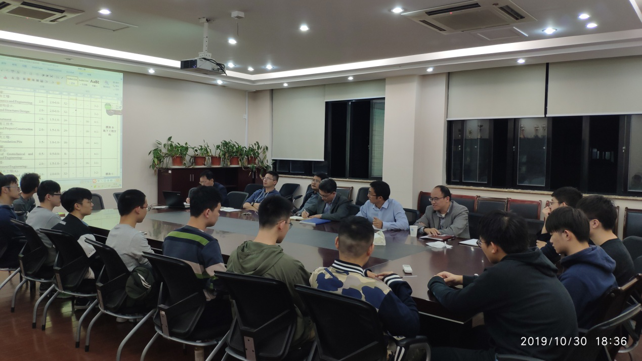 10月30日晚上,土建学院岩土与市政工程研究所岩土工程方向老师在SA306会议室召开17级土木工程专业地下工程方向学生座谈会。座谈会以“成长成才,圆满大学生活,奔向美好未来”为主题,参加人员有土建学院副院长王文军、研究所副所长方鹏飞和特聘教授朱大勇等岩土工程方向教师以及同学们共20人。