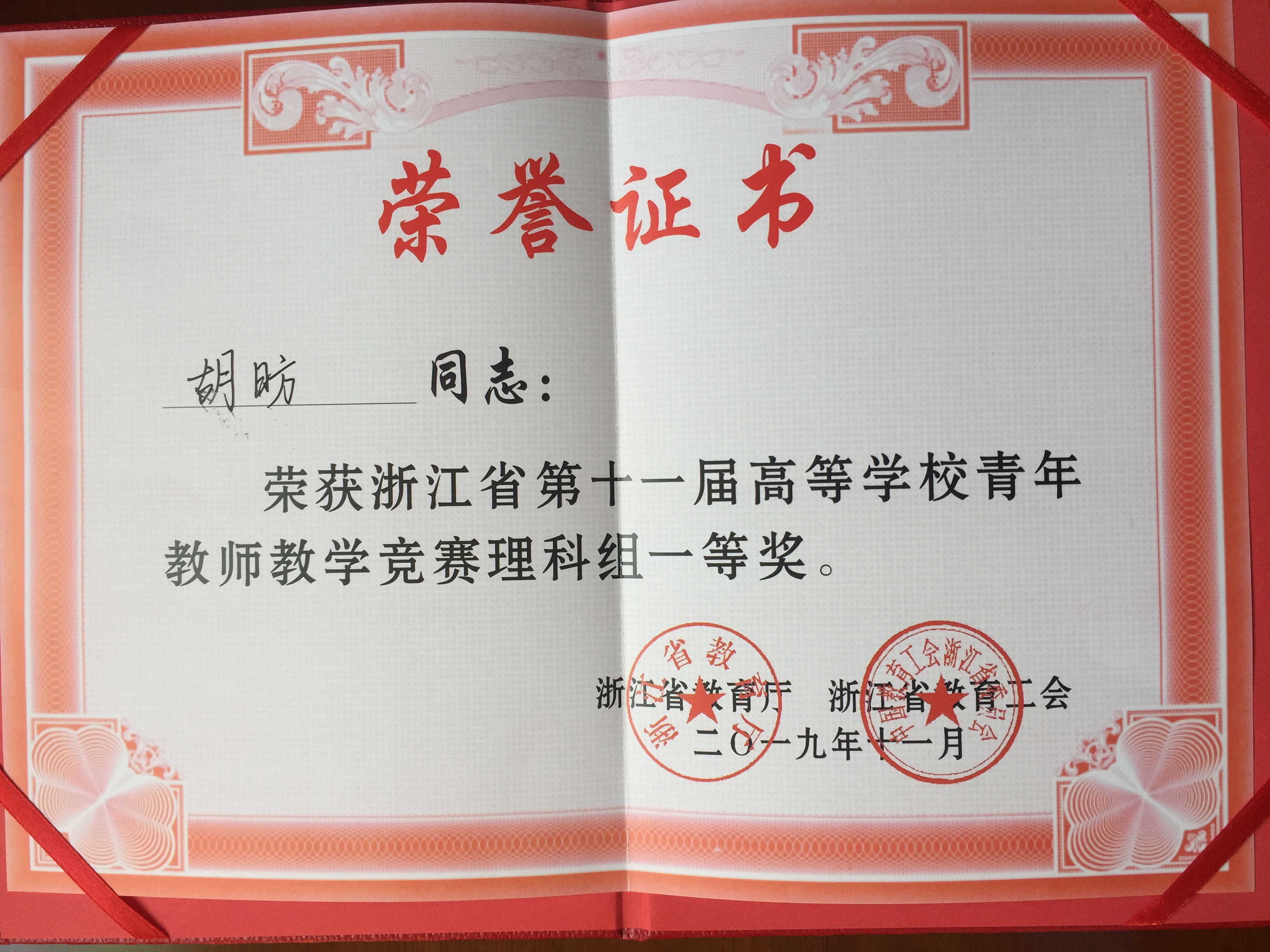 信息学院胡昉老师喜获浙江省第十一届高等学校青年教师教学竞赛理科组一等奖