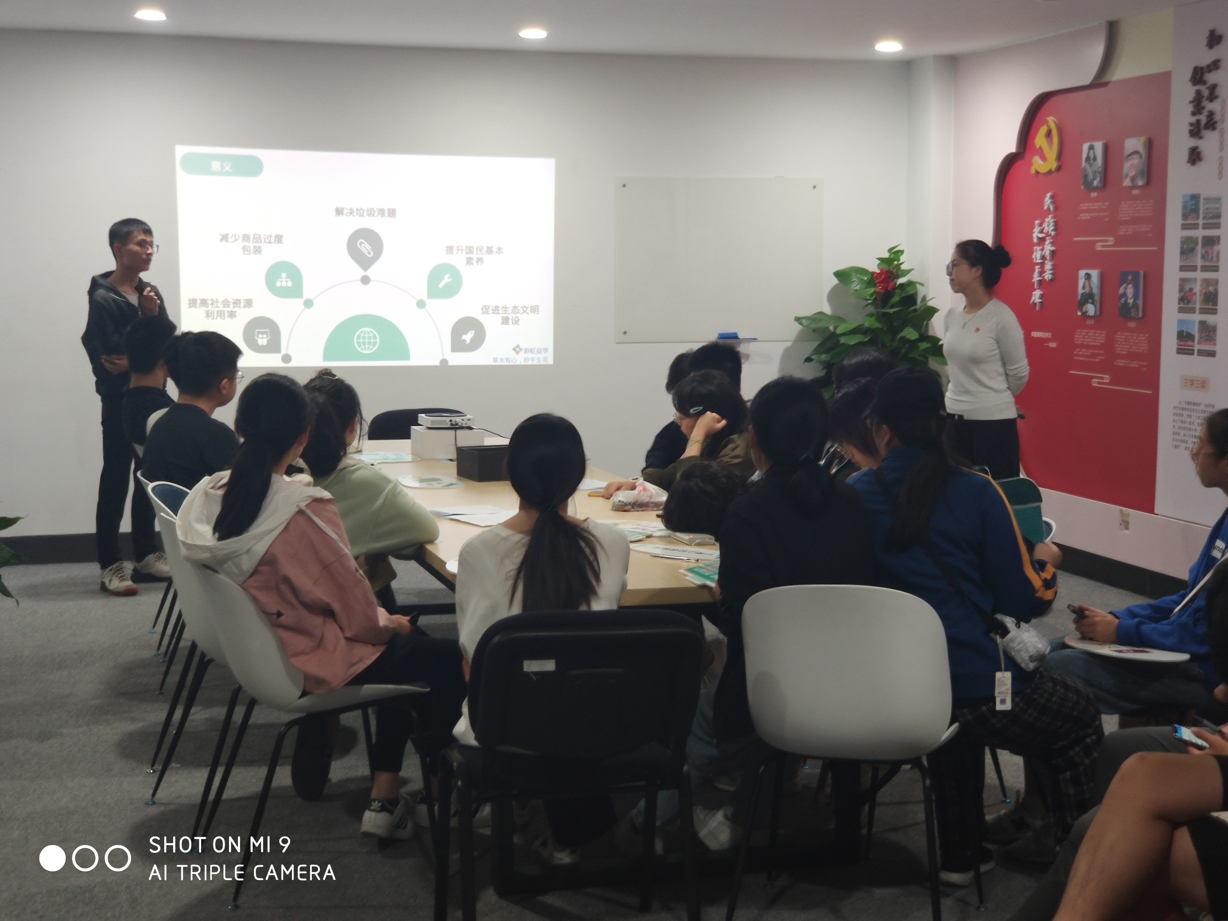 10月12日,为助力学校更好地开展垃圾分类工作,强化同学们的垃圾分类意识,生化学院学生党支部邀请彩虹益学垃圾分类公益团队在生活园区开展了生动有趣的垃圾分类知识讲座,27幢和31幢全体寝室长参加了本次讲座。