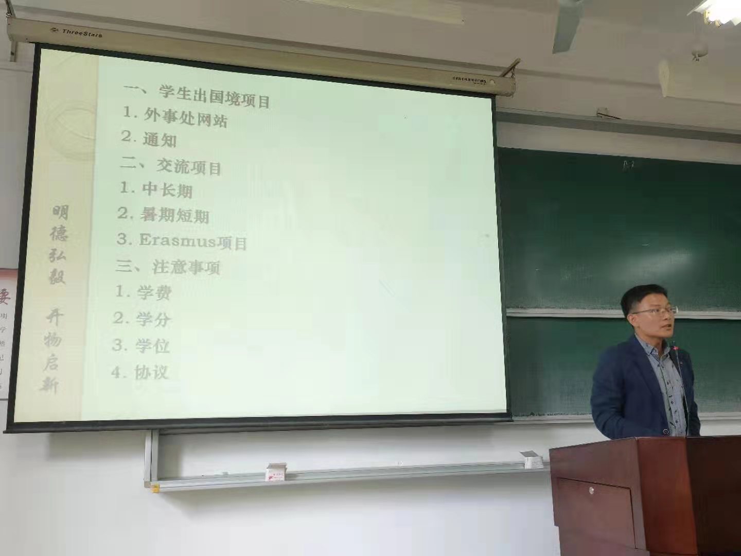 外事处副处长程萌老师介绍了学校的出国(境)、中长期、暑假短期等学习交流项目,以及获得学分和学位的注意事项。