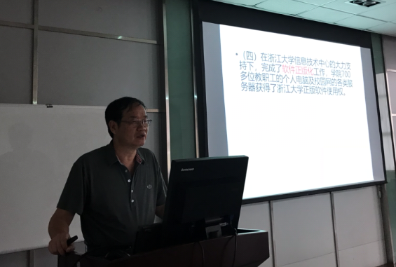 赵继海老师总结回顾了2019年上半年中心主要工作进展情况。完成了“最多跑一次”信息技术架构顶层设计和网上办事大厅的采购工作,系统部署工作正在进行中;完成了生活区一卡通与浙大网络整合的布线工作,提升了办公区域无线网带宽;完成了软件正版化工作和全国大学生先进成图大赛的服务工作;举办了校园读书节,完成了10个“书香理工”阅读品牌项目创建的申报和立项工作;基本完成了密集书库改造施工和书架的拆装,为校史馆的建设作了相关准备;图书馆向数字化、移动化和智能化转型取得新进展,微信端服务继续在全省高校中列靠前位置;考研服务、咨询和学科服务取得了良好的效果;档案馆获评宁波市市直单位“数字档案室”,并启动系统更新工作。赵继海老师分析指出了目前工作中存在的各种问题,包括信息化基础设施设备老化,数字校园、智慧校园建设滞后,信息安全压力进一步加大;书刊不断涨价,藏书空间饱和,馆舍漏水、渗水情况严重,水电事故隐患严重;中心人手紧张局面未得到缓解,职称、职务、职级晋升困难,人才队伍结构和素质亟待改良。