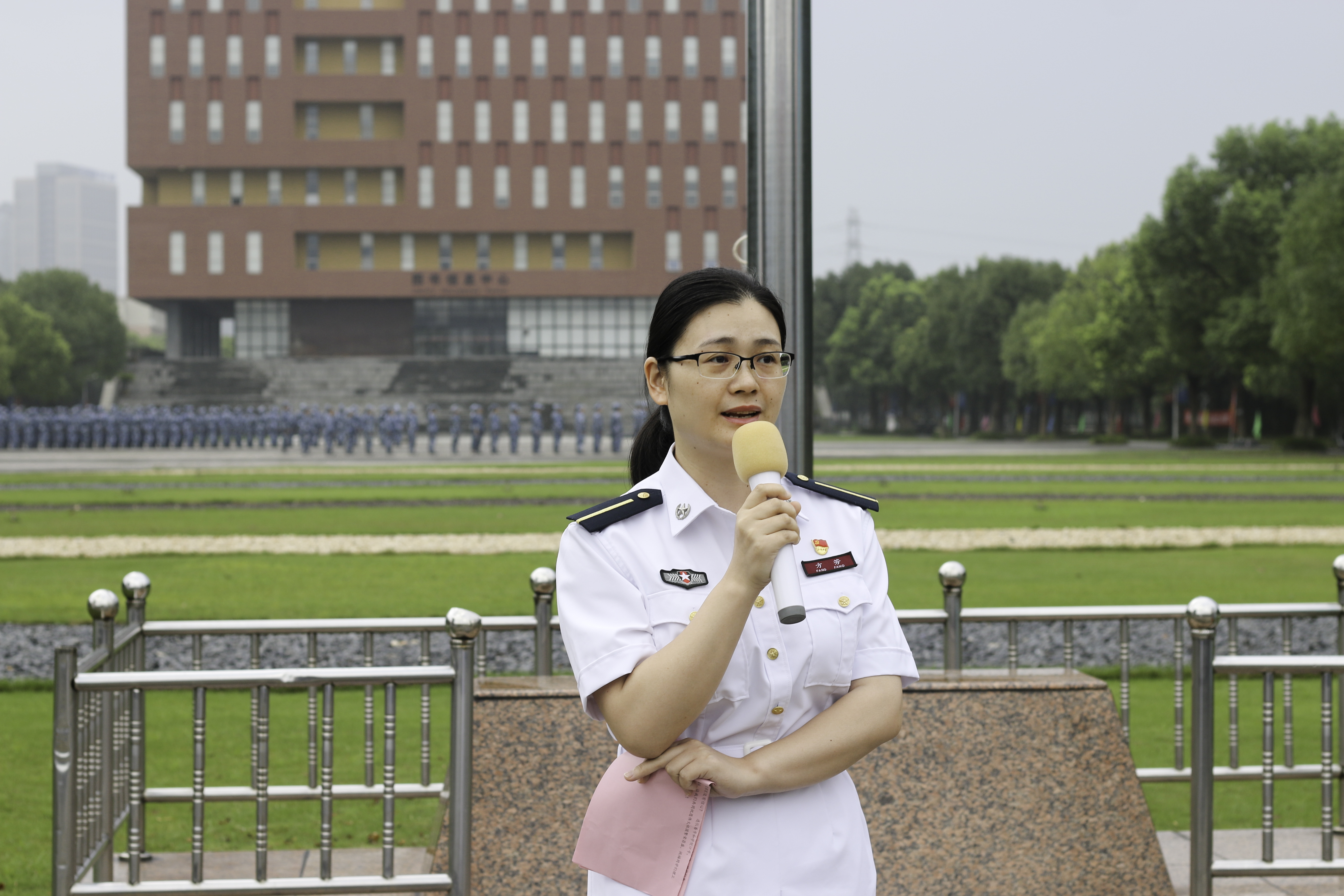 升旗仪式上,信息学院自动化192班新生代表韩心怡同学上台发言,代表新生们表达了对祖国的美好祝愿、对完成军训任务的决心。