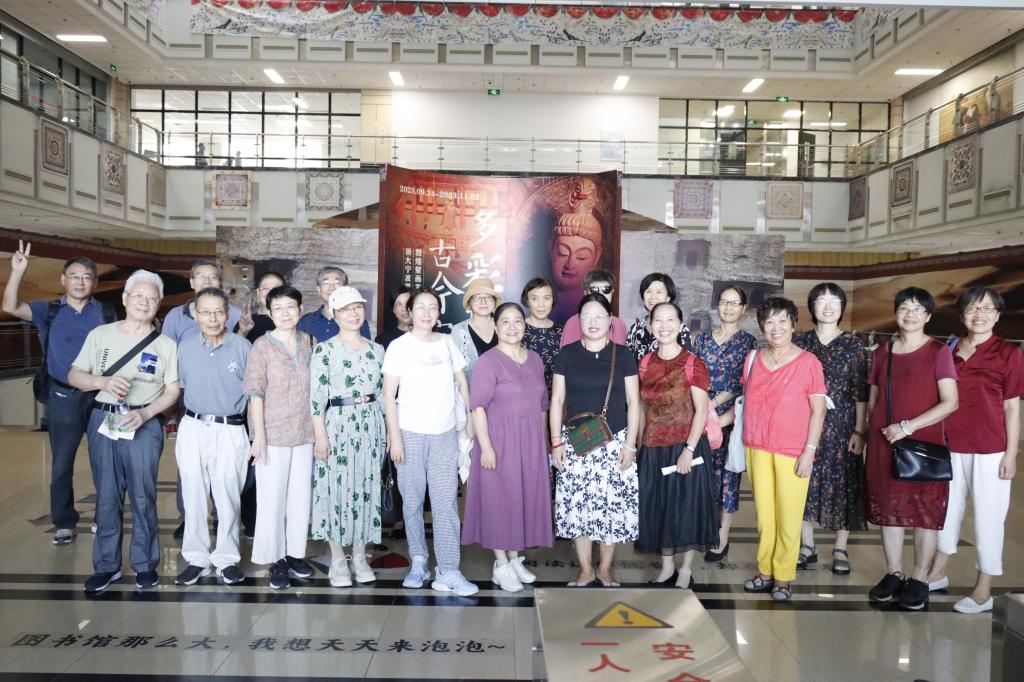 退休教师们参观了图书馆里的“多彩敦煌 古今宁波”敦煌壁画展览,近距离欣赏敦煌艺术神韵和敦煌之美,感受浓厚文化艺术内涵。接着,他们走进校史馆,聆听讲解员细致的讲解,欣赏宝贵的历史照片和物件,感受学校发展历程和巨大变化。在校园健步走环节,教师们一路参观科创中心、浙里星光、两幢新的学生寝室大楼以及粉刷一新的校园建筑等,感受学校崭新面貌。