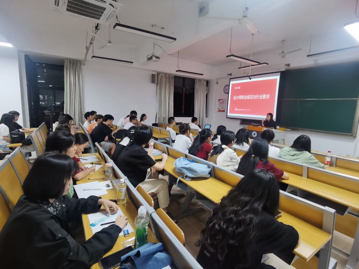 交流会后,左敏为设计学院学生进行了设计师职业规范与行业要求指导,并与同学们进行了交流。