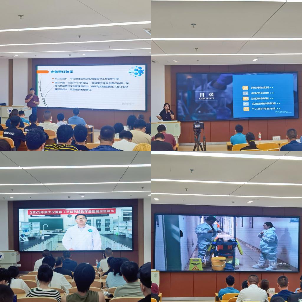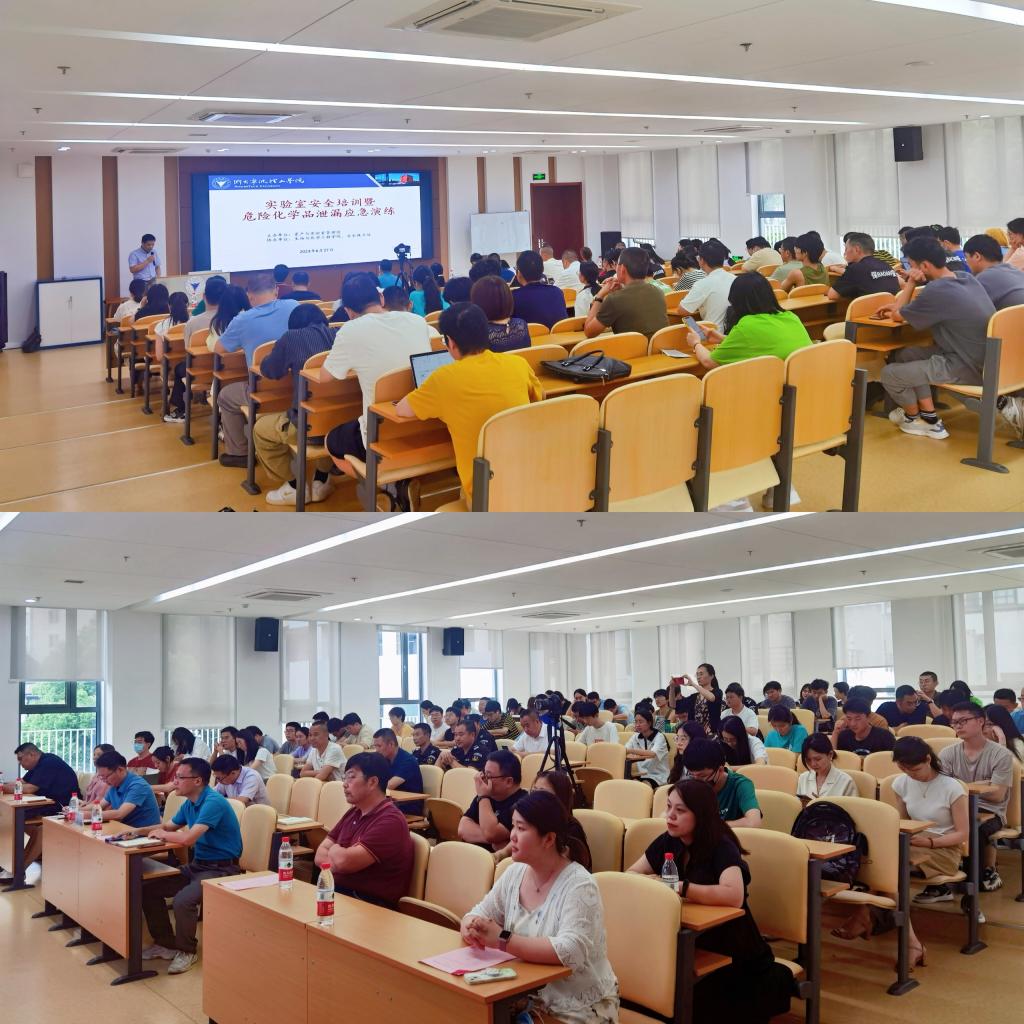 6月27日,学校在学术交流中心201、生化学院ND212实验室组织开展“人人讲安全、个个会应急”安全教育活动。副校长胡余波,相关二级学院和职能部门负责人,实验室管理人员、师生代表90余人参加本次活动。