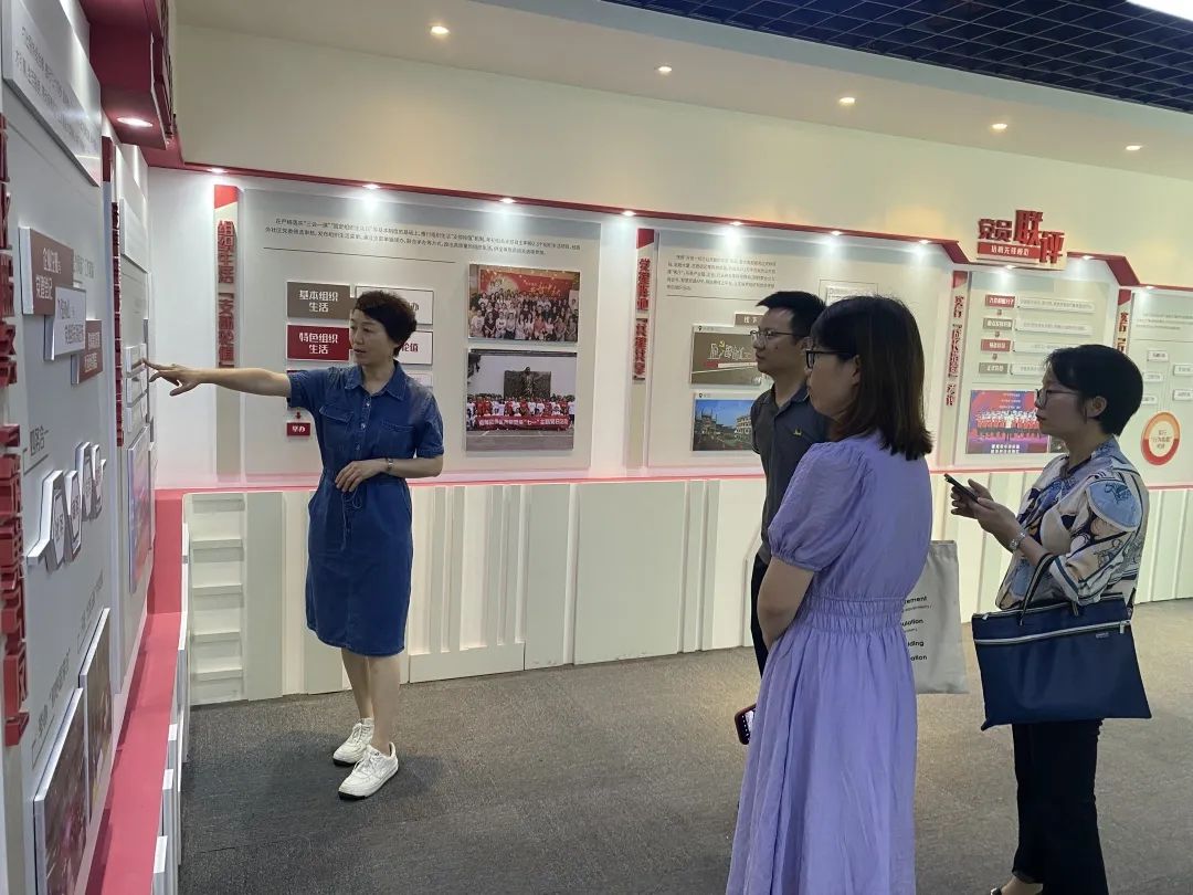 在南部商务区管理办公室徐洪春科长引领下,一行人参观了南部商务区管理办公室党建阵地。南部商务区管理办公室作为浙江省示范党群服务中心,“三联两转”工作法成效显著,充分激发了企业活力,促进了地方经济发展,为传法学院党建育人创新改革提供了思路与借鉴。