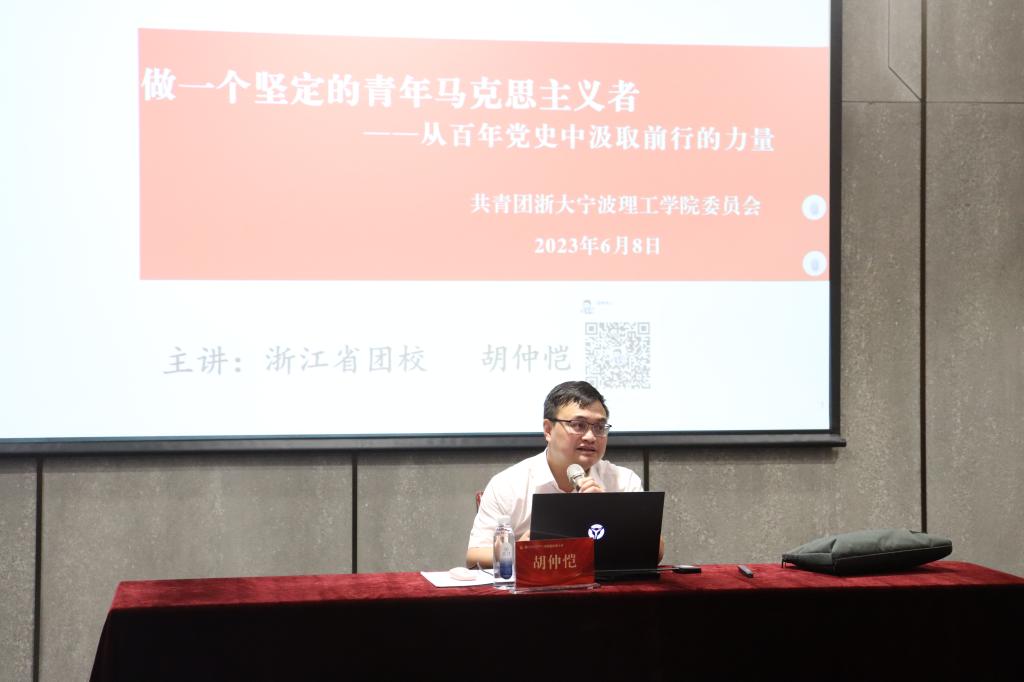 胡仲恺从“必须信仰中国共产党为什么能”“必须自觉走好中国特色社会主义道路”和“争做新时代马克思主义者”三个方面阐述如何做一名坚定的青年马克思主义者。他从鸦片战争开始,介绍了中国共产党发展的历程,中国共产党走过了百年不平凡的历程,领导人民建立了卓越功勋,靠的是一代又一代共产党人对马克思主义、社会主义和共产主义的坚定信仰。旗帜决定方向,道路决定命运,当代中国的发展离不开中国特色社会主义制度的支持,走中国特色社会主义道路,稳步推进新时代现代化建设事业,显著提高综合国力和国际竞争力,不断开创中国特色大国外交新局面。