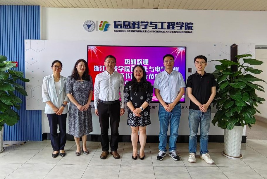 6月7日下午,浙江科技学院自动化与电气工程学院党委书记王杨,党委副书记陈泷,副院长周乐,专职组织员程莉莉一行来访信息学院调研工作,学校信息学院领导班子热情接待并参加座谈交流。