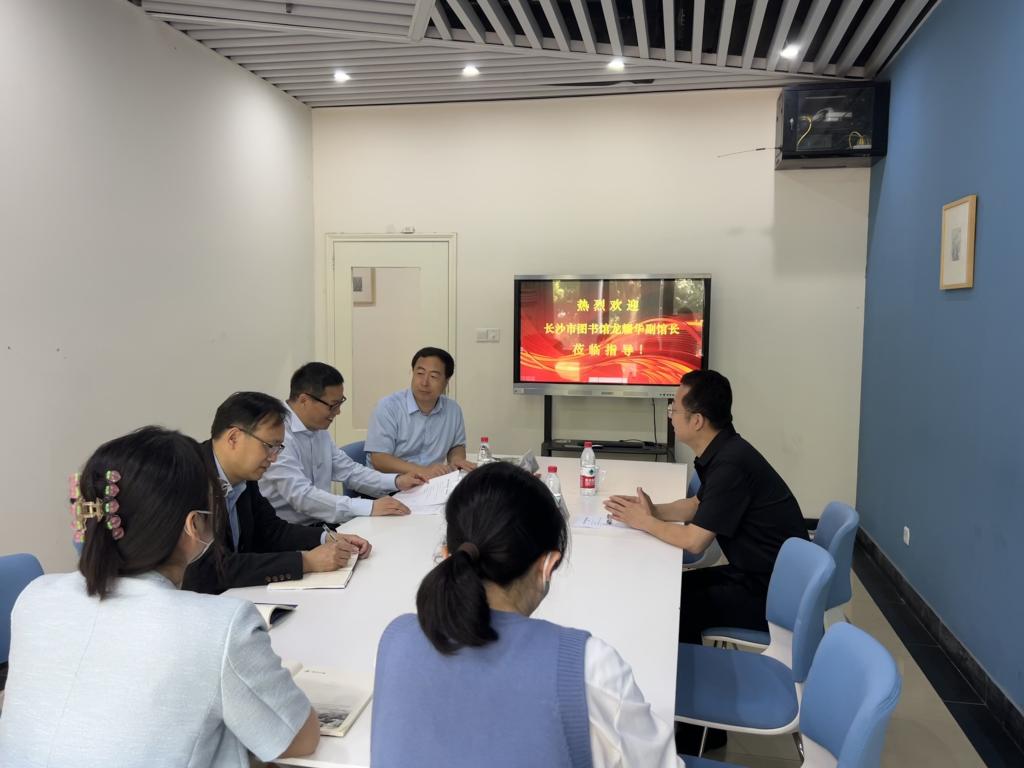 5月26日上午,长沙市图书馆副馆长龙耀华来开云图书馆调研交流,副校长鲁东明陪同座谈,图书馆负责人及相关工作人员参与交流。