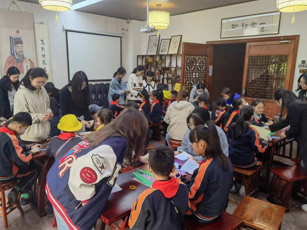 4月22日上午,鄞州区学士小学30位“小客人”走进阳明学堂,与阳明宣讲团队成员共同参与了一堂“折花·识花”劳动教育课程。