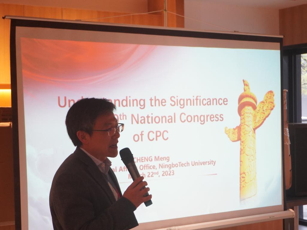 国合处副处长程萌开展专题讲座宣讲党的二十大精神,增进了外籍教师对党的二十大精神的理解、对中国发展道路和发展模式的认同以及对中国未来发展目标和规划的认识。