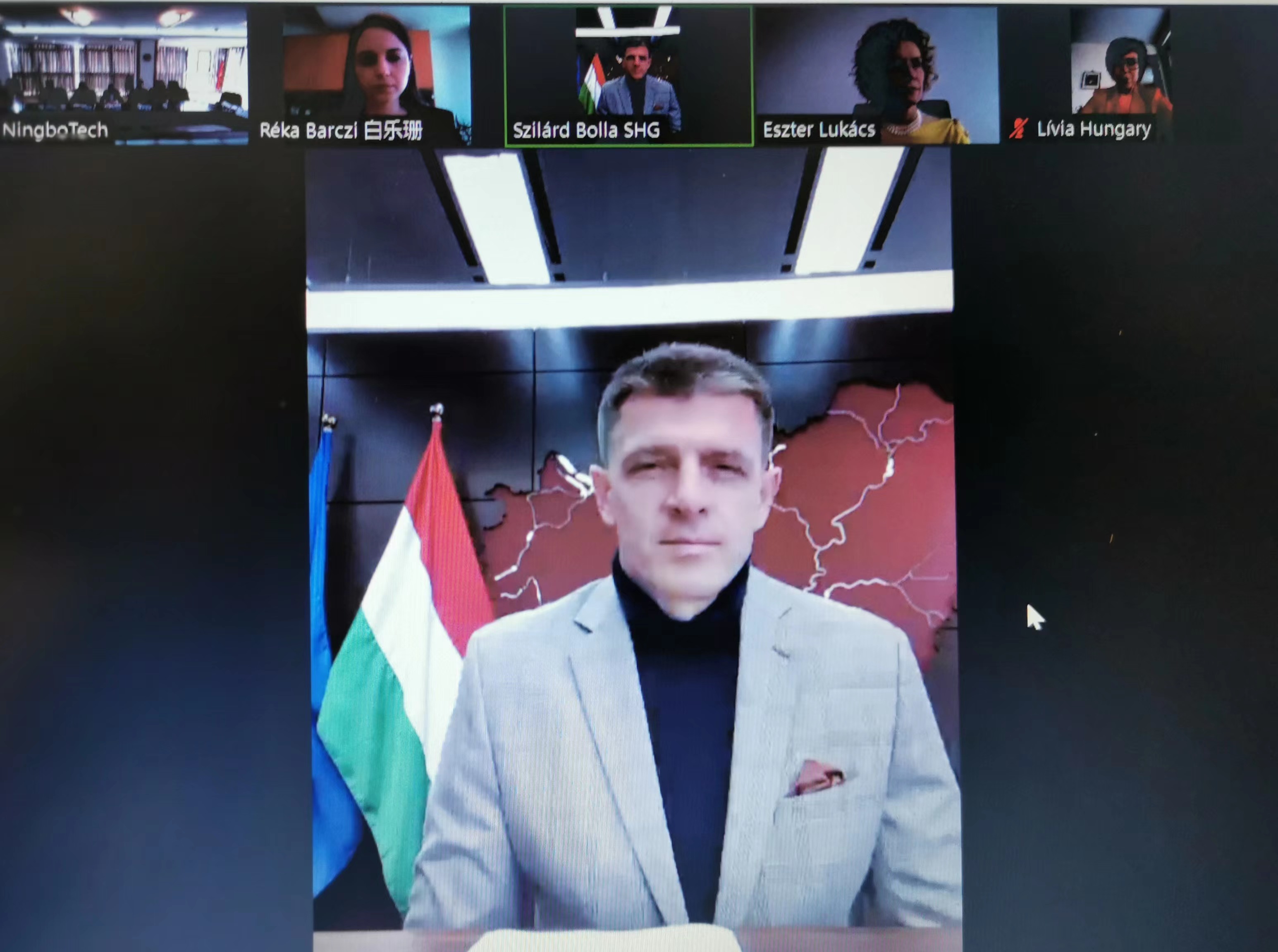 双方就学校概况、师资团队、科研实力、国际合作等方面内容进行了交流,并初步探讨并确定了师生交换以及物流工程合作等方案的可行性。匈牙利驻上海总领事强调,中国与匈牙利政府一直以来保持着良好关系,两国高校间的科研合作和师生交流获得两国政府的高度重视和支持,希望此次视频会能够促成两校达成合作共识。经过协商,双方对相关合作领域都持有积极的态度,近期将商议具体合作方案。