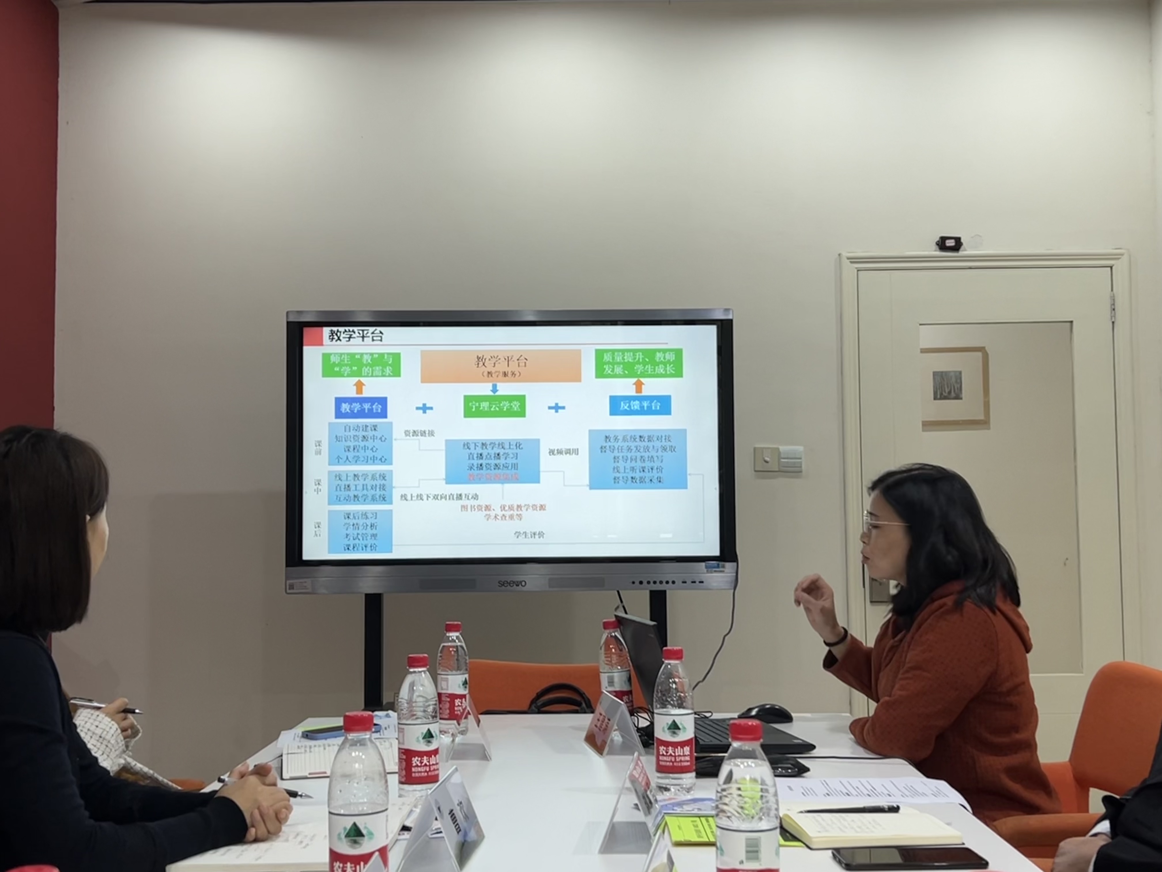 图书馆王建涛汇报了我馆围绕数字化服务自主研发的系列软件,介绍了图书馆的服务外包产业特色数据库信息门户和海洋信息资源服务平台的运行情况及建设成效。