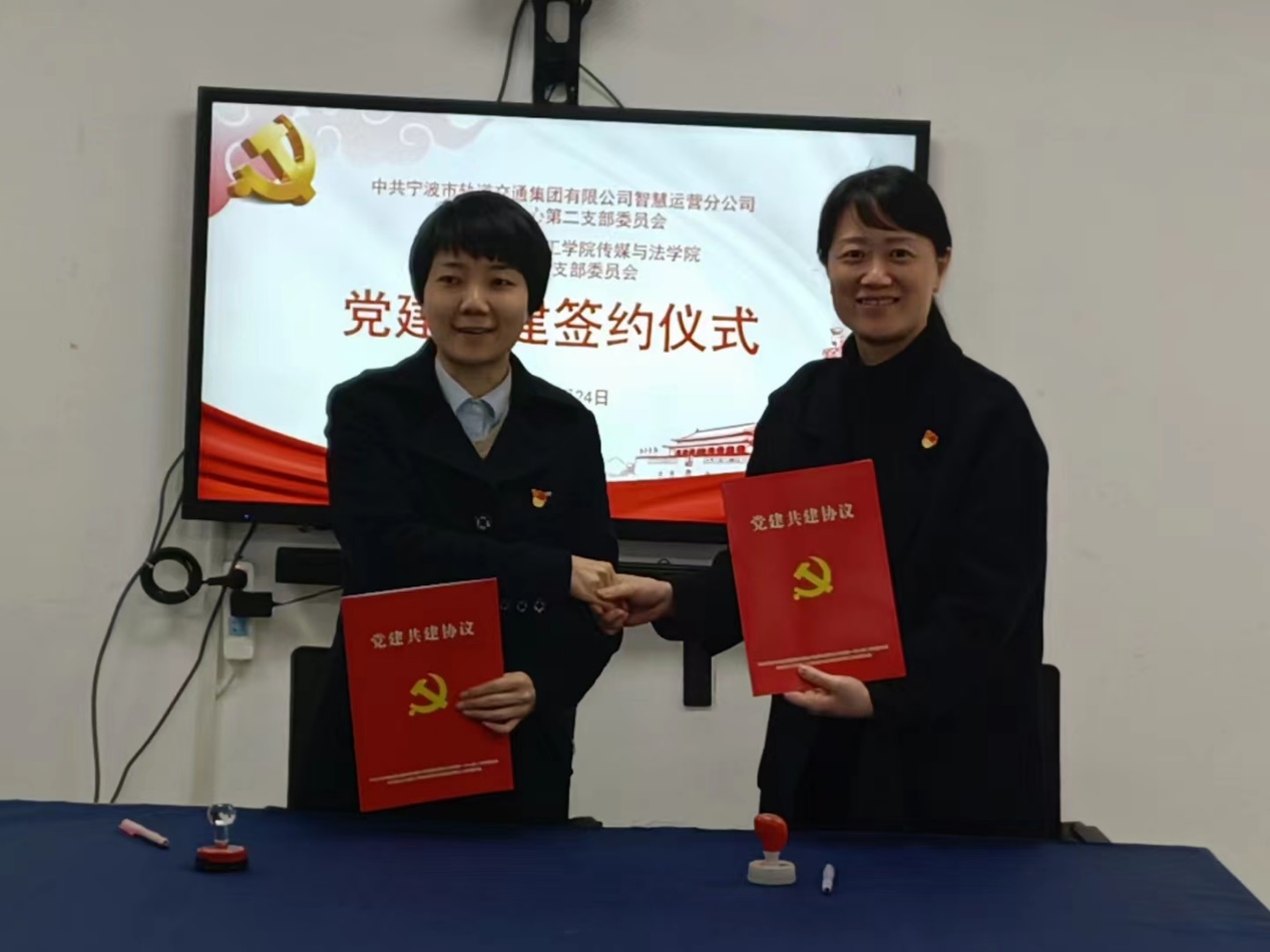 为深入贯彻落实党的二十大精神,充分发挥党建核心引领作用,进一步提高党建工作水平,更好地实现校企互助、合作共赢。3月24日下午,传媒与法学院法学教工党支部与宁波市轨道交通集团有限公司智慧运营分公司站务一中心第二支部(下简称站务一中心第二党支部)在5号线南高教园区站举行党建共建签约仪式。