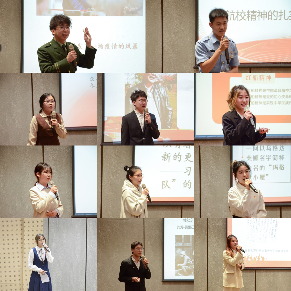 郑婕以“担当、吃苦、奋斗”为核心,表达青年要让青春在强国有我实践中绽放绚丽之花;空军退伍大学生张浩东通过时空比对,讲述77载里的东北老航校精神;赵锦博通过浙大“文化长征”对求是精神进行阐明;林奕廷对老物件进行回忆,剖析其中所蕴含的革命故事、红色精神;“一段援疆路,一生援情谊!”来自乌鲁木齐的杨秋雪从援疆之路看东西协作、民族团结;外语专业的郑若楠从“八八战略”寻宝图看中国外交故事,展现浙江人“干在实处,走在前列,勇立潮头”的精神品格;赵芳艺同学以中国式滑雪空中技巧女队员徐梦桃为例,展示青年一代的奋斗力量;退伍大学生叶洪轩讲述追寻心中三道光的青春故事。