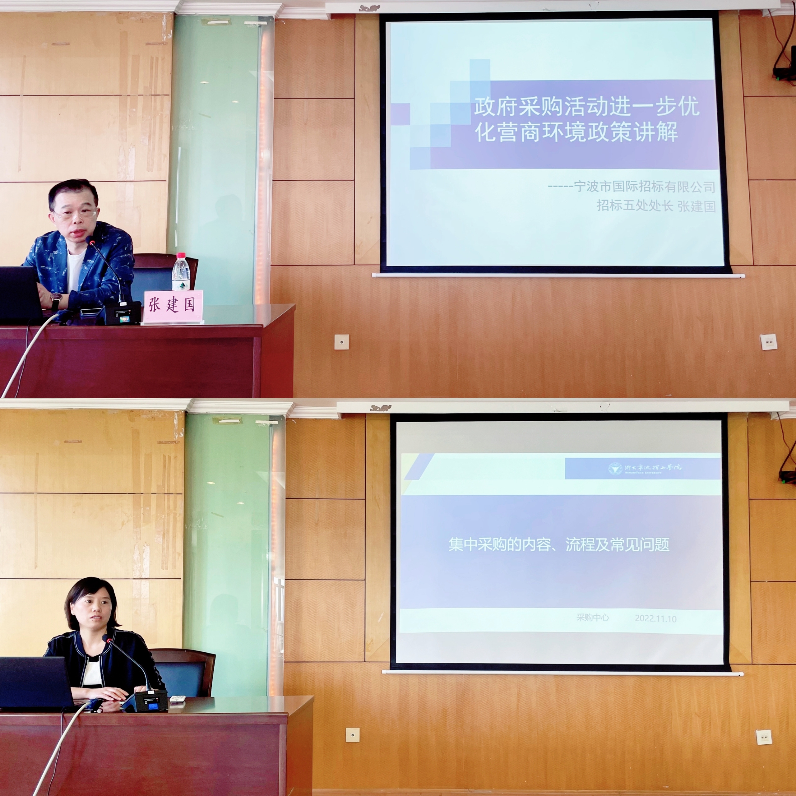 采购中心副主任陈霄峰介绍了采购中心的工作职能以及集中采购合同签订流程,丁晓老师讲解了集中采购的内容和常见问题。