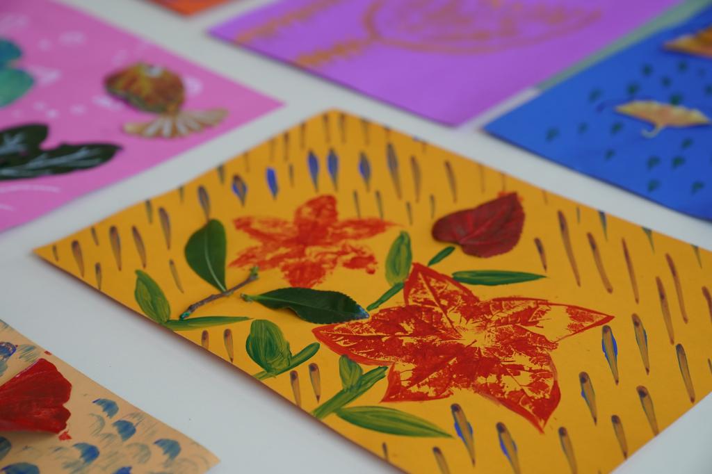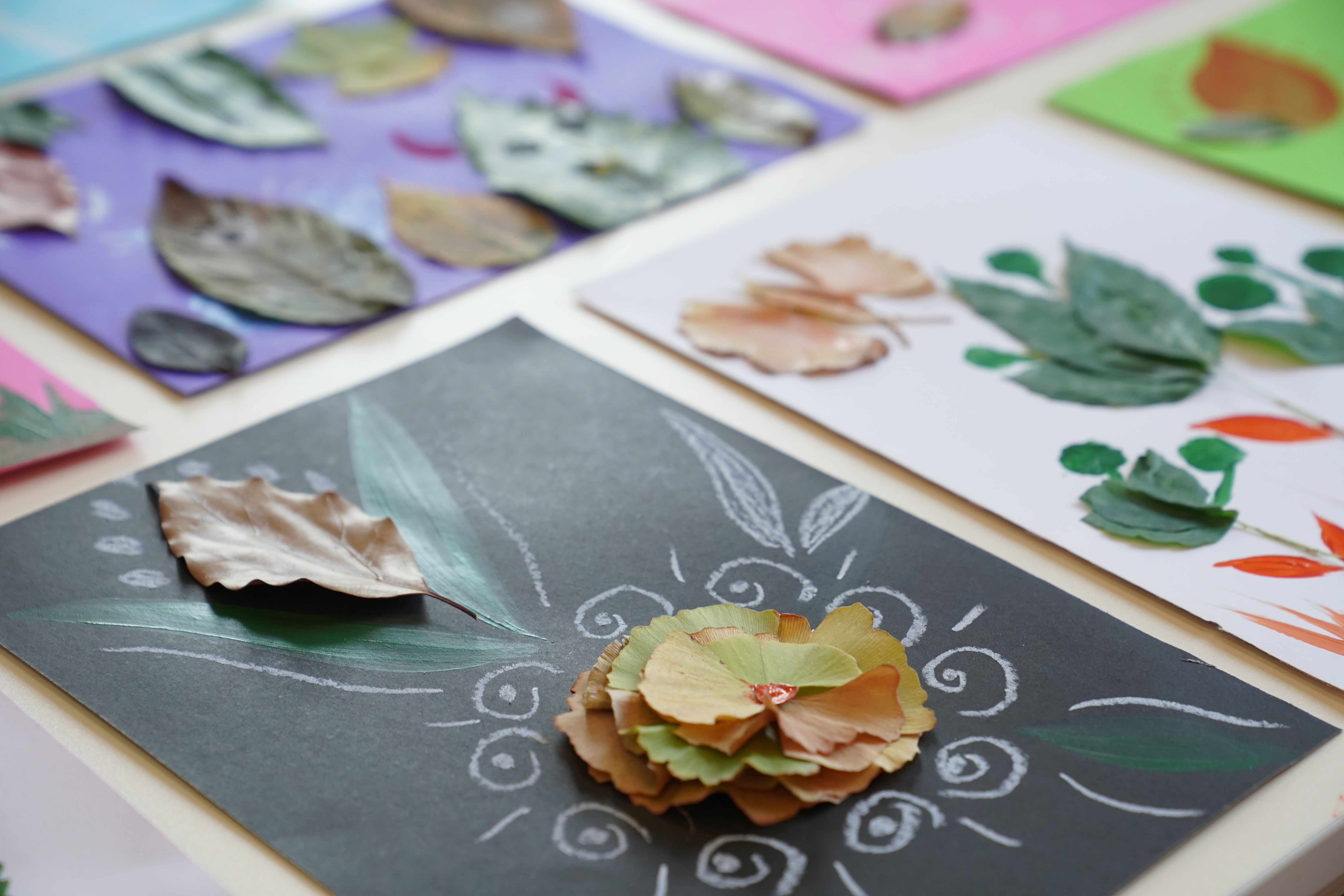 在鲍圆洋的指导下,同学们采集树叶等生活中常见的各种材料展开观察和想象,学习运用多元造型语言,发挥个性化创意,设计制作了各种热情盛放的“心花”,向党表达热爱和敬意,献礼党的二十大。