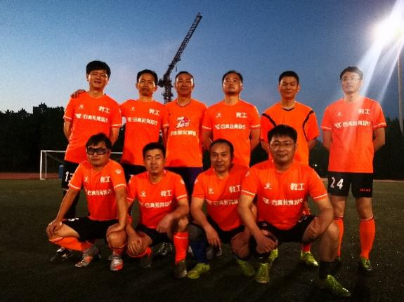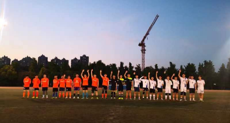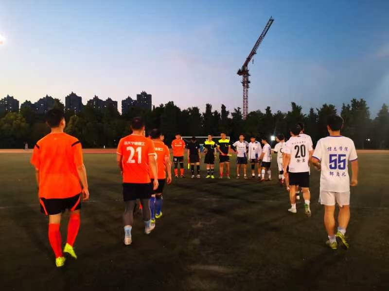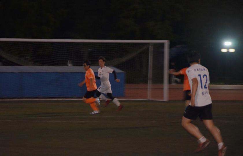 本次比赛的对阵双方是学校教工足球队和毕业生足球联队,傍晚六点三十,随着裁判员一声哨响,比赛正式开始。教职工队穿着亮丽的橘色队服,毕业生们穿着利落的白色球服,给夜晚的操场增添了一道色彩。