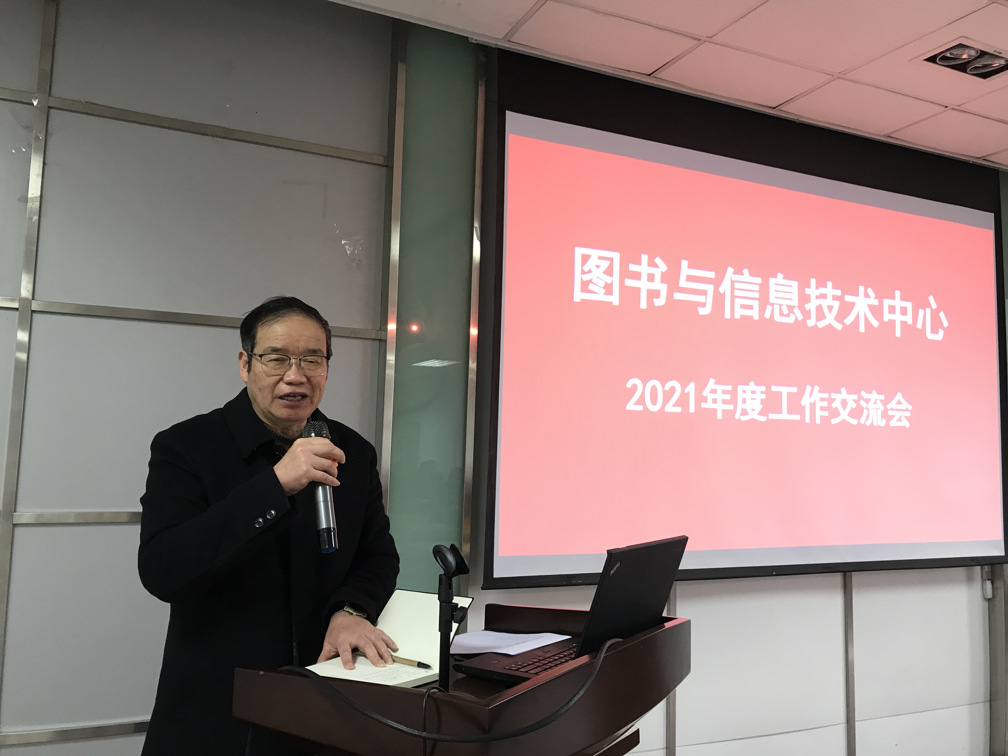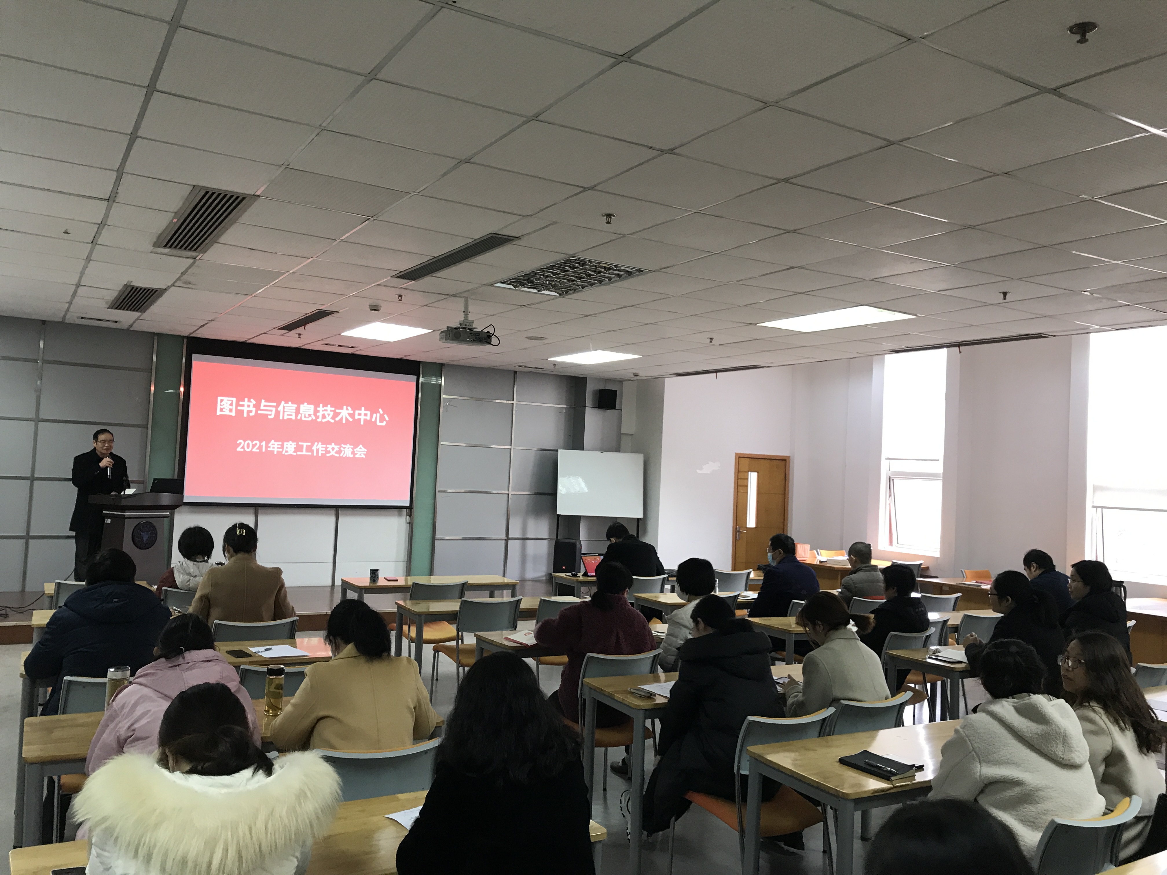 1月5日上午,图书与信息技术中心2021年度工作交流会在图书馆328室召开。会议由中心主任赵继海主持。