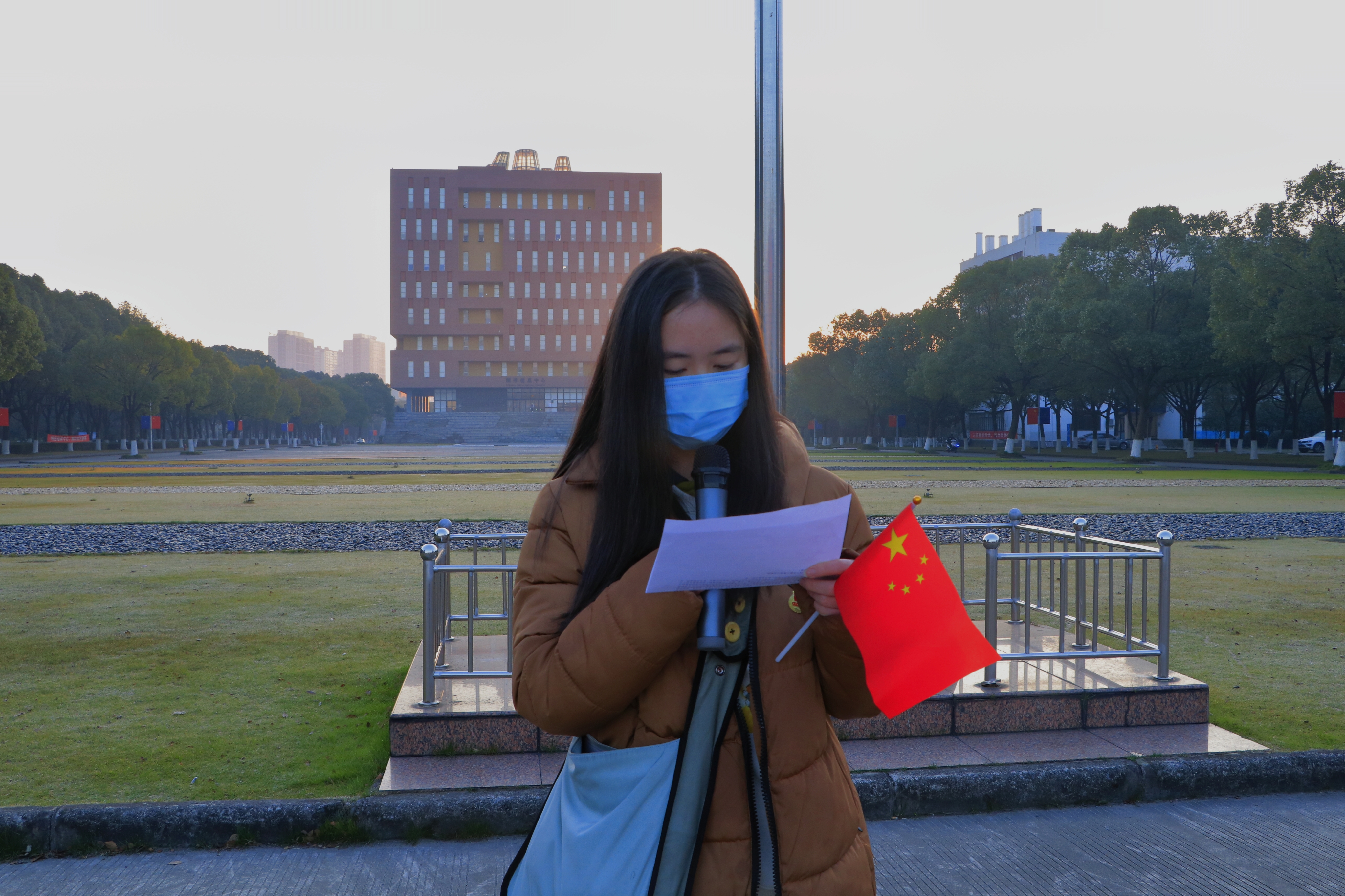 12月20日清晨,传媒与法学院于西大门国旗下举行了学习“党的十九届六中全会精神”党史学习教育主题升旗仪式,学院思政主管曲昊杨、新发展党员及第四十一期入党积极分子参加了本次升旗仪式。