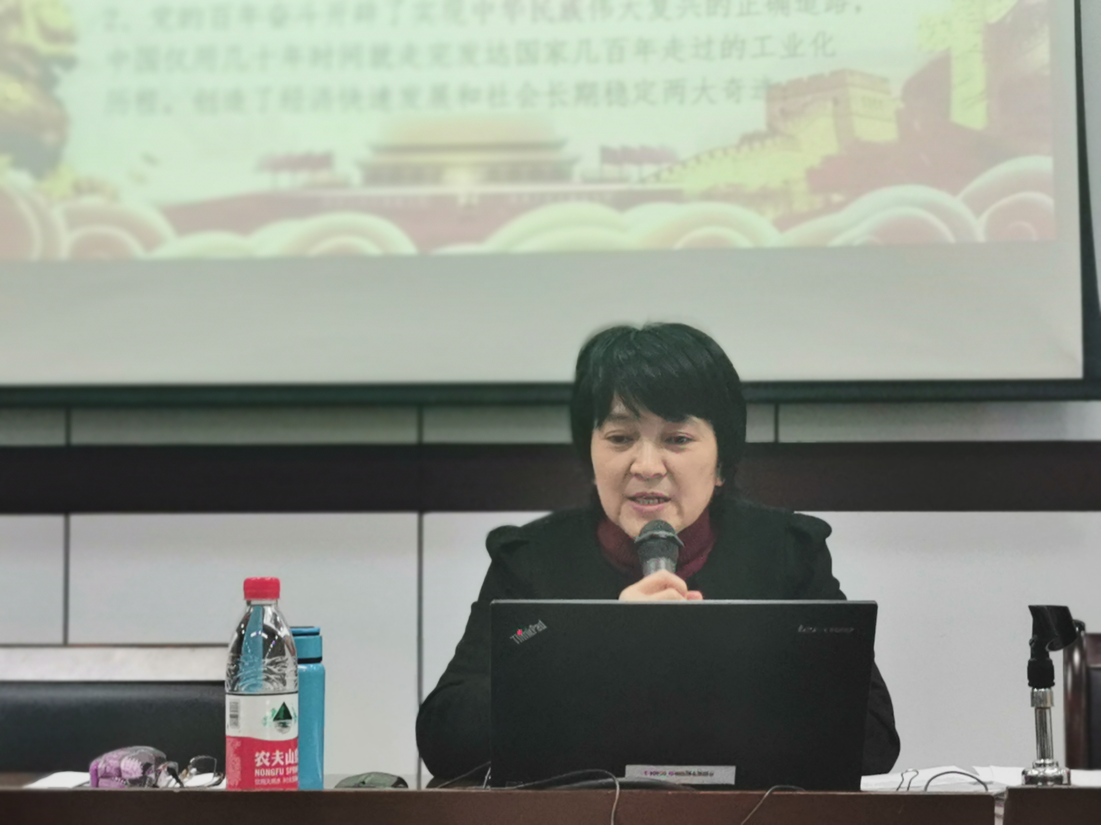 2021年12月2日,学院邀请学校机关第三党支部方国娟老师作党的十九届六中全会精神宣讲,外国语学院学生第一、第二党支部全体学生党员在SC405参加了学习。