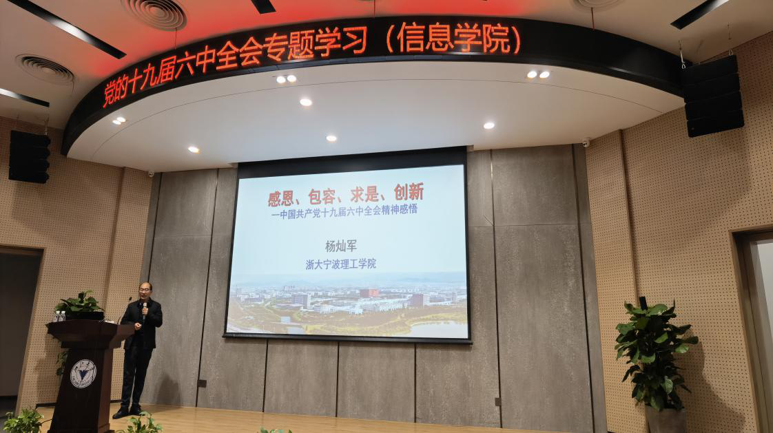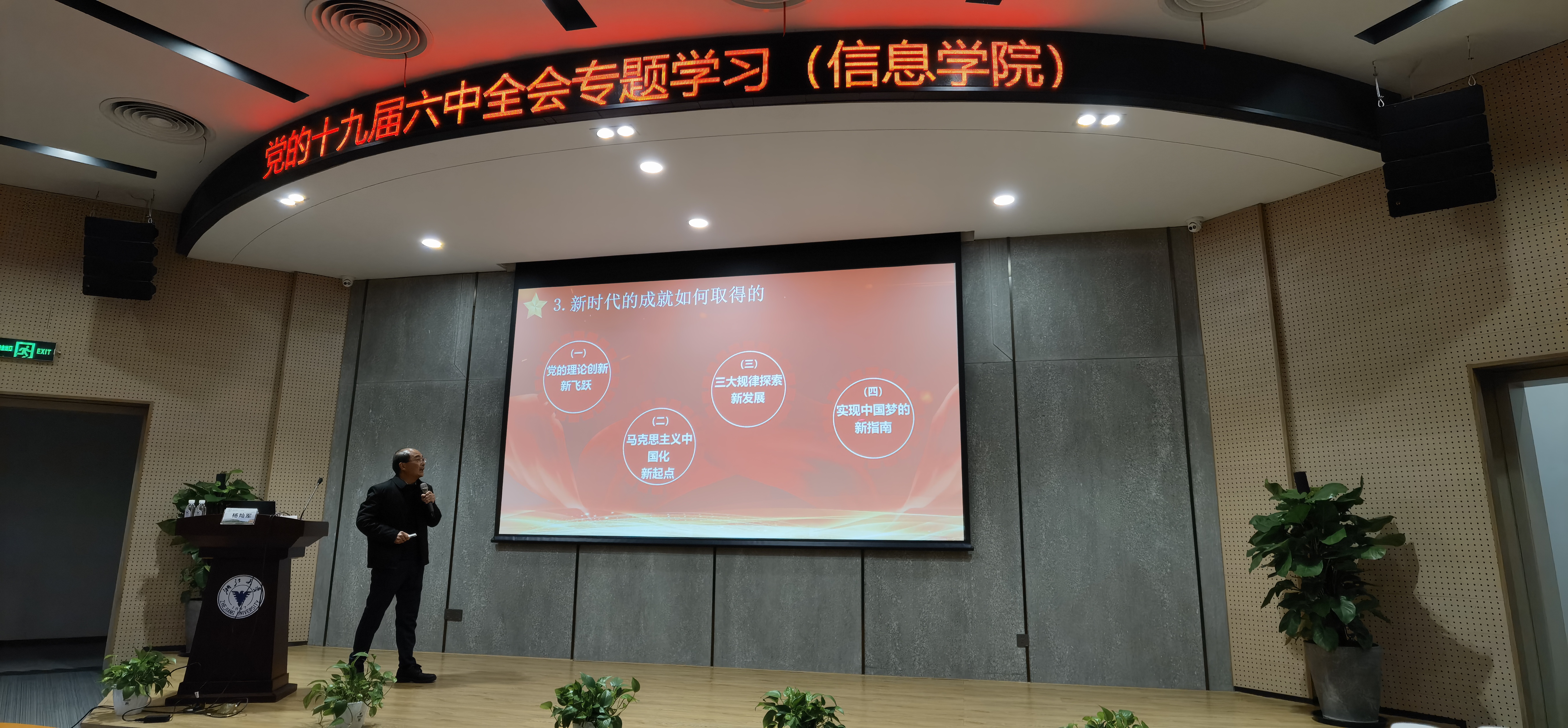 12月2日下午,信息科学与工程学院在启新学院举行党的十九届六中全会精神专题学习会,学校副校长杨灿军教授以《感恩、包容、求是、创新》为题,为信息学子作了专题辅导报告。