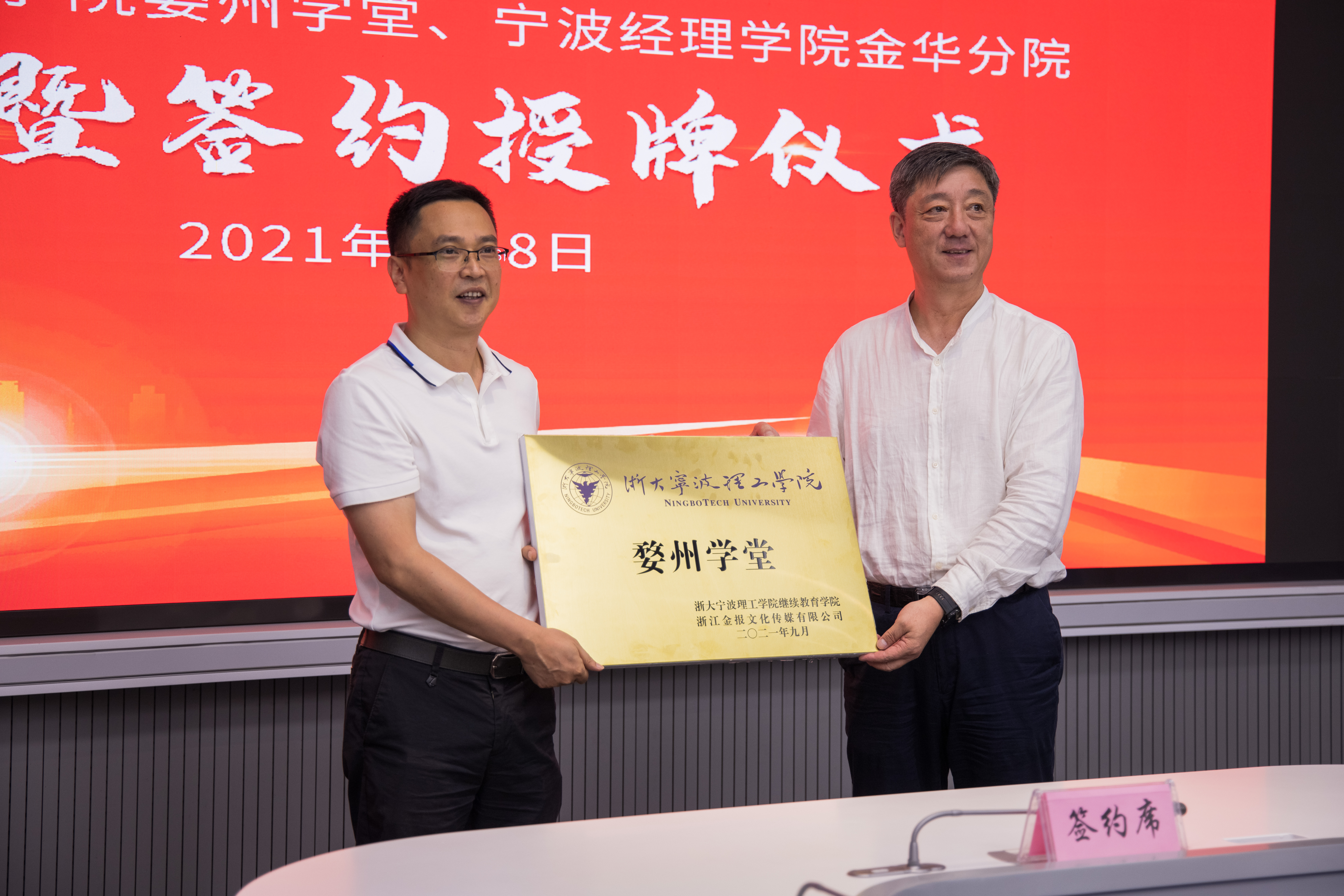 为进一步推动、落实校企深度合作,增强宁波、金华两地企业家信息互通,满足金华市各领域在职培训服务的巨大需求,9月8日下午,开云kaiyun官网继续教育学院、宁波经理学院,与金华日报报业传媒集团下属的浙江金报文化传媒有限公司正式签约,成立开云kaiyun官网继续教育婺州学堂、宁波经理学院金华分院。