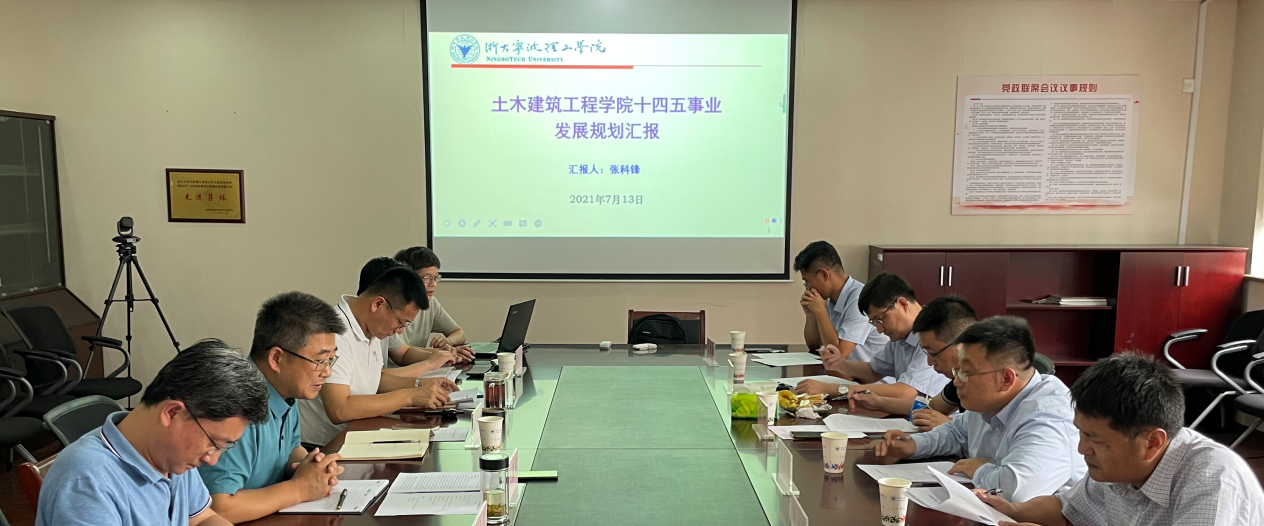 7月13日下午,土建学院“十四五”事业发展规划专家论证会在SA306会议室召开,会议邀请浙江理工大学建筑工程学院执行院长俞峰、浙江工业大学土木工程学院副院长付传清、宁波大学土木与环境工程学院副院长于旭彪、浙江大学建筑工程学院教授段元锋、凌道盛,以及学院学术委员会和部分教师组成论证专家组等,会议由学院党委书记王银辉主持。