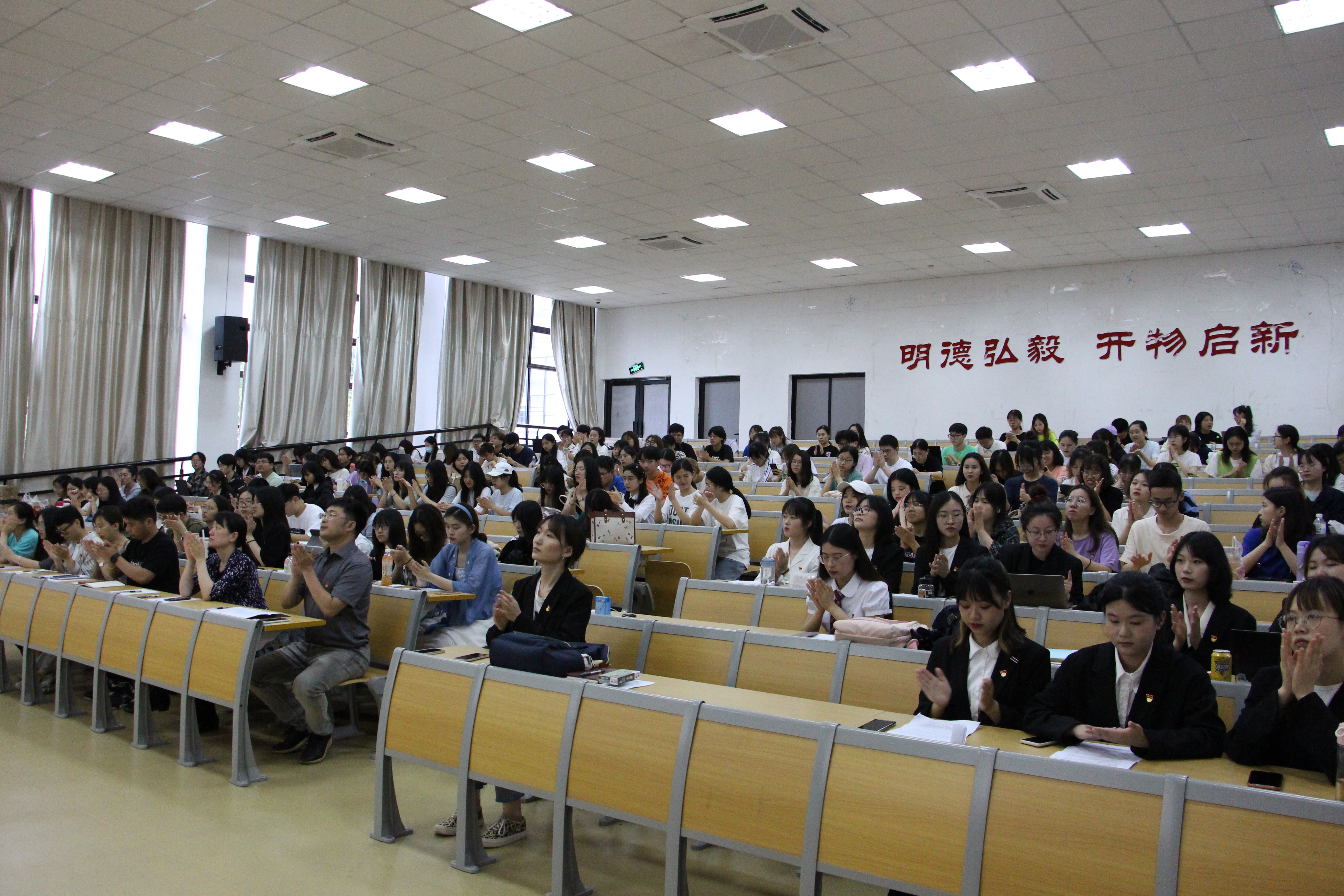 6月2日晚,传媒与法学院在SB102教室开展习近平法治思想宣讲团成立仪式,仪式由传媒与法学院党委组织委员、法学学生支部书记赵红老师主持,传媒与法学院党委副书记、纪委书记胡鹿鸣对习近平法治思想宣讲团进行介绍并对学生党员寄予期望,并为宣讲团师生代表法学教工党支部书记韩缨,法学学生党支部、组织委员顾子惠同学授旗。